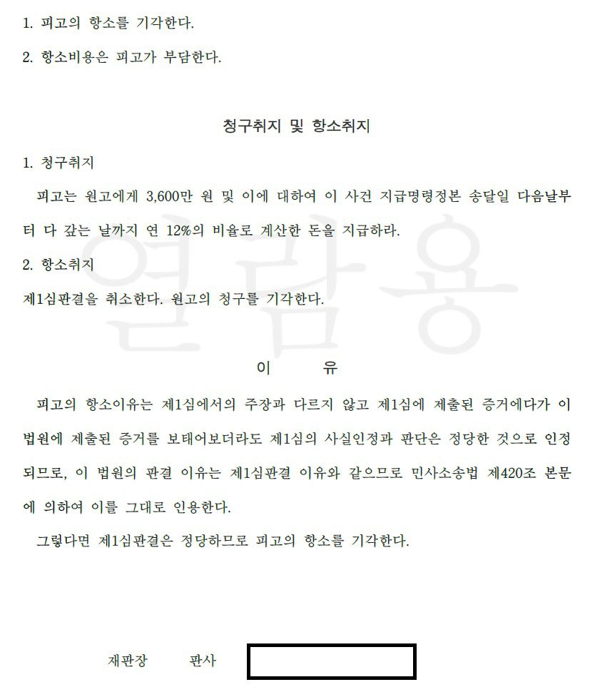 [This legal case involves a loan recovery claim for 36 million KRW, which successfully progressed from an initial Payment Order application to a finalized appellate victory after the defendant filed a formal objection. Representing the plaintiff, we secured a total win in the court of first instance, and when the defendant appealed this decision to the Suwon District Court, the appellate division dismissed the appeal in 2025, ruling that the original judgment was just and based on sufficient evidence. This final judgment confirms the defendant’s obligation to pay the full principal amount plus 12% annual interest, effectively concluding the litigation in favor of our client.]